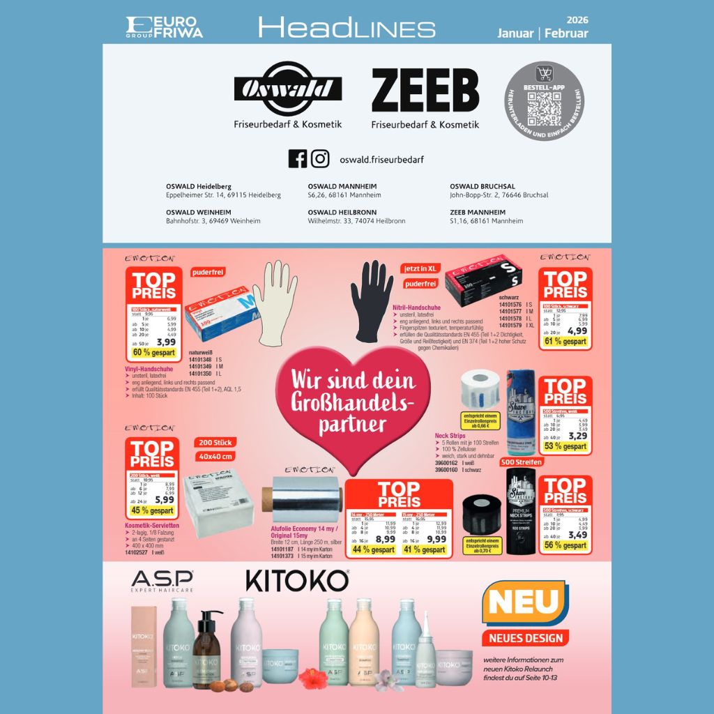 Vom 01. bis 06. Dezember 2025 wird bei Oswald gefeiert: 100 Jahre Kompetenz, Qualität und Leidenschaft für Friseurbedarf & Kosmetik. Zur Feier des Jubiläums gibt es in der Weihnachtswoche 20% auf das gesamte Sortiment (ausgenommen Sonderangebote). Eine ideale Gelegenheit, um Lieblingsprodukte aufzustocken, Neues auszuprobieren oder stilvolle Geschenke für die Feiertage